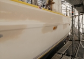 Sailing boat remodeling projectBoat maintenance, painting and repairThis RON HOLLAND 86, a 26 m lenght sailyacht, was completely repainted on the exterior. Before the painting process, we carried out reparation works and surface preparation. After the surface preparation we painted both hull and superstructure with AWLGRIP’s paint. The underwater body was painted with products of the INTERNATIONAL brand. |