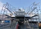 Proyecto de remodelación de embarcación a motorPintura, mantenimiento y reparación de barcosEsta motora del año 2009, construida por Maiora, fue repintada exteriormente en su totalidad. Primero se hicieron trabajos previos al pintado como el saneamiento de superficies y procesos de masillas. Después se pintó el flybridge, la superestructura y el casco con pintura de la marca AWLGRIP. En la obra viva se realizó un chorreado para la aplicación posterior de imprimaciones y pintura. |
