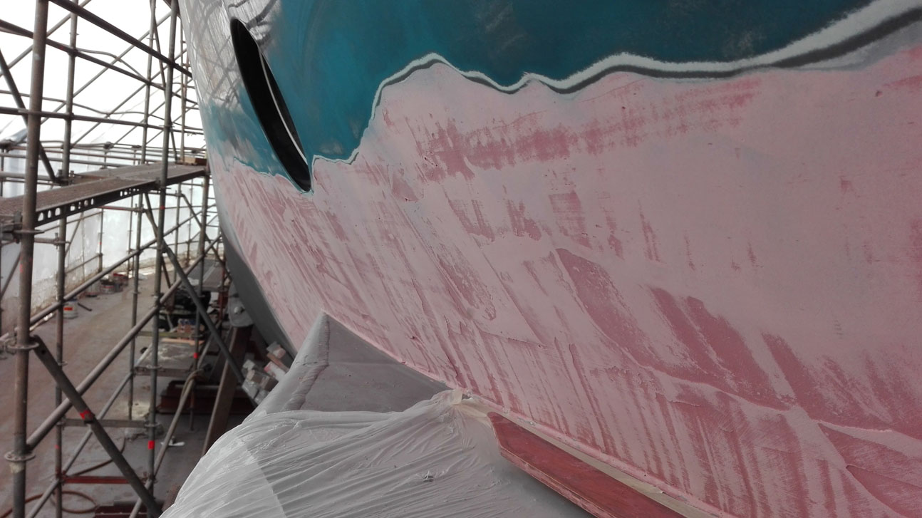 Proyecto de remodelación de embarcación a motorPintura, mantenimiento y reparación de barcosEn esta Navetta 31 se realizó un añadido en la obra viva de la embarcación para mejorar su flotabilidad. Es por eso que tuvimos que aplicar masilla en toda la superficie de construcción nueva, realizando el acabado con la aplicación del topcoat de la marca AWLGRIP. |